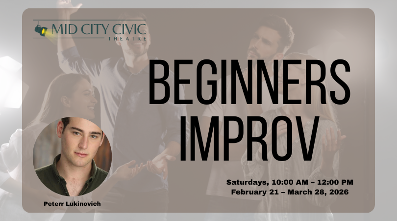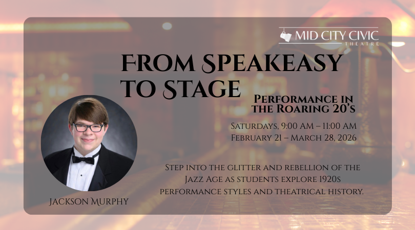 Education is a core value of Mid City Civic Theatre. Through our Artist Development programs, we offer a variety of classes throughout the year designed to help artists at every stage build craft, confidence, and collaboration. Whether on stage, on camera, or behind the scenes, these opportunities support learning, exploration, and the shared creative process that sits at the heart of our community.